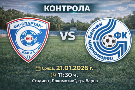 Приятелската среща между Черноморец (Балчик) и втория тим на елитния Спартак (Варна) ще се изиграе п...