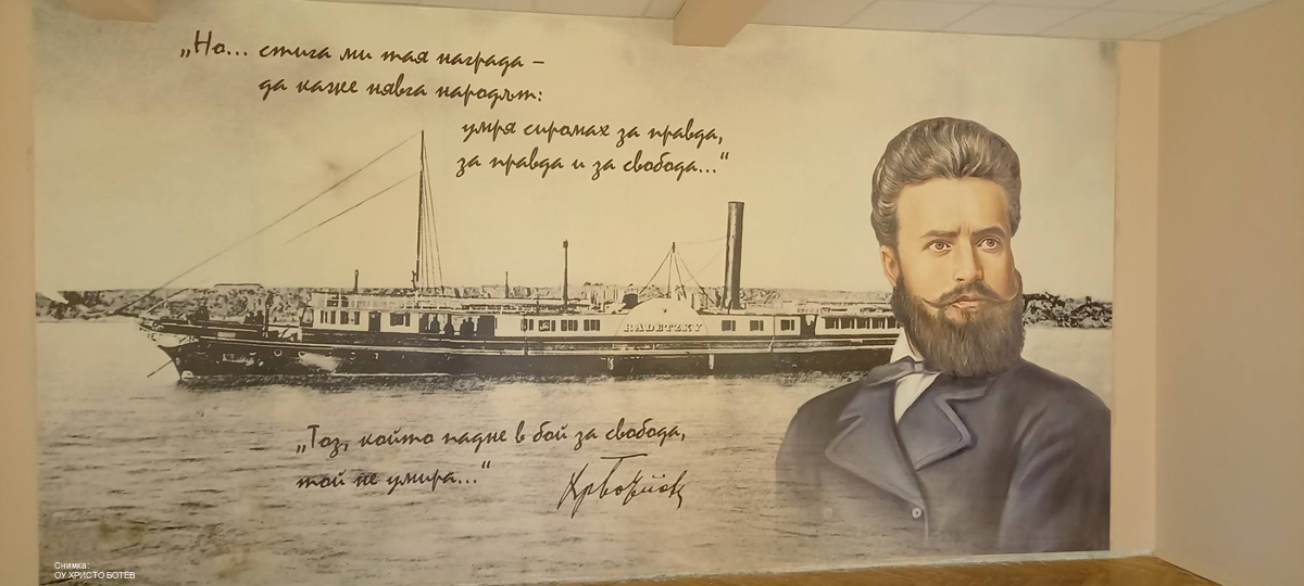 Фототапет с образа на Христо Ботев вдъхновява учениците в училището в с. Стожер