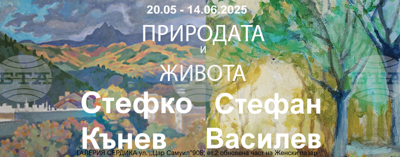 Изложба „Природата и живота“ обединява творби на художниците Стефко Кънев и Стефан Василев. Баща и син показват различен стил на възприятия и отражение на природата, разказват организаторите на експозицията, чието откриване ще е на 20 май в столичната галерия „Сердика“.