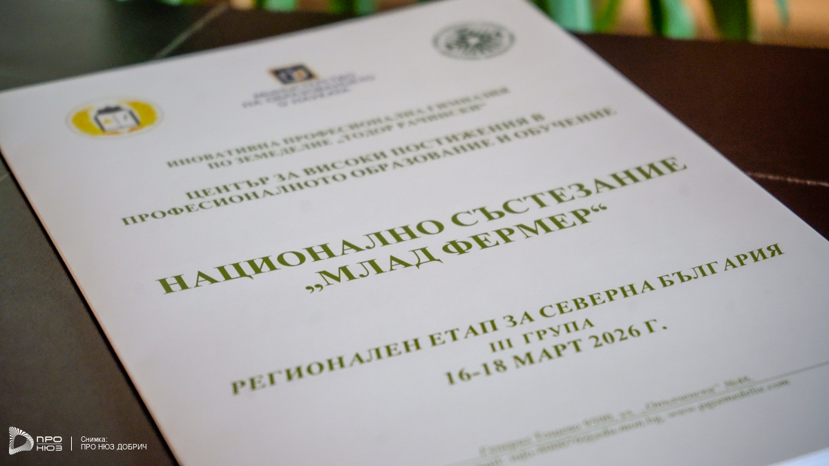 Професионалната гимназия по земеделие „Тодор Рачински“ в Генерал Тошево е домакин на регионалния етап на Националното състезание „Млад фермер“. В надпреварата участват 22 отбора от професионални гимназии и средни училища от областите Добрич, Варна, Шумен, Силистра, Търговище, Разград и Русе.