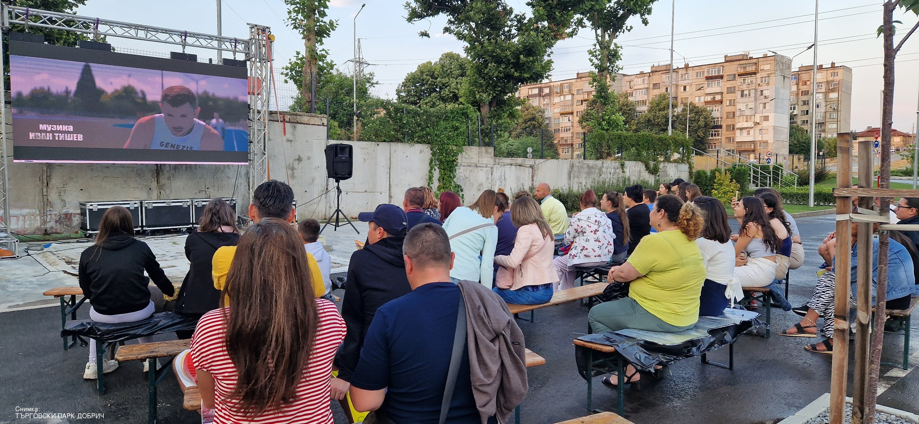 Въпреки дъждовния следобед на 9 юли десетки добричлии се събраха на паркинга на Търговски парк Добрич за безплатна прожекция под открито небе.