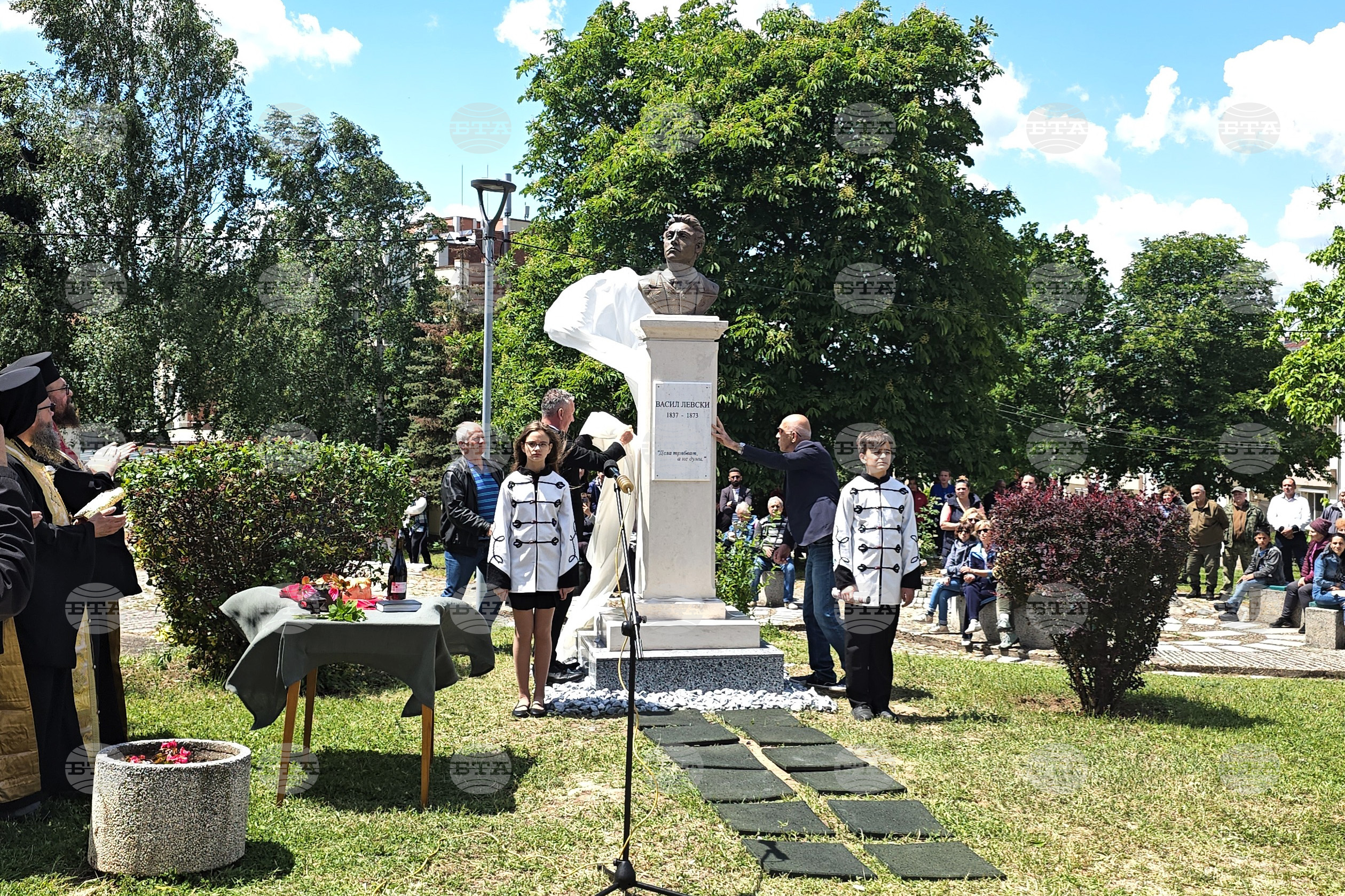 Скулпторът Илия Боляров се обърна към младите хора и децата, които присъстваха на откриването на паметника на Васил Левски, да запомнят думите, делата и това, което Левски е проповядвал - за "чиста и свята република". Пазете любовта към България, за да бъдем един силен и славен народ, за да можем да представяме България и българското, призова той.