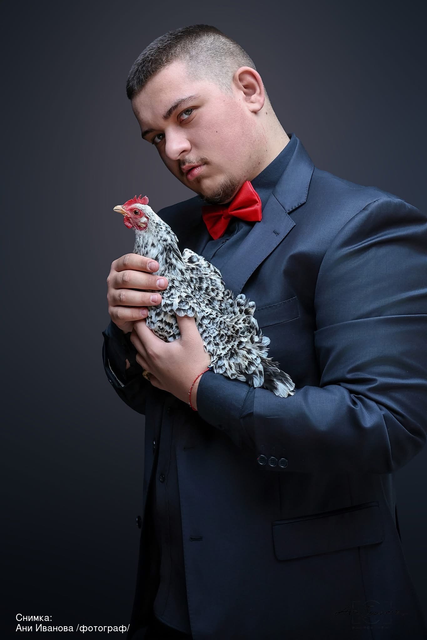 Абитуриент от Добрич привлече внимание с необичайна идея за снимка в албума на класа си – той позира с две от кокошките, които отглежда като свое хоби. Птиците носят имената Жана и Чери и вече са част от един от най-запомнящите се абитуриентски кадри тази година.