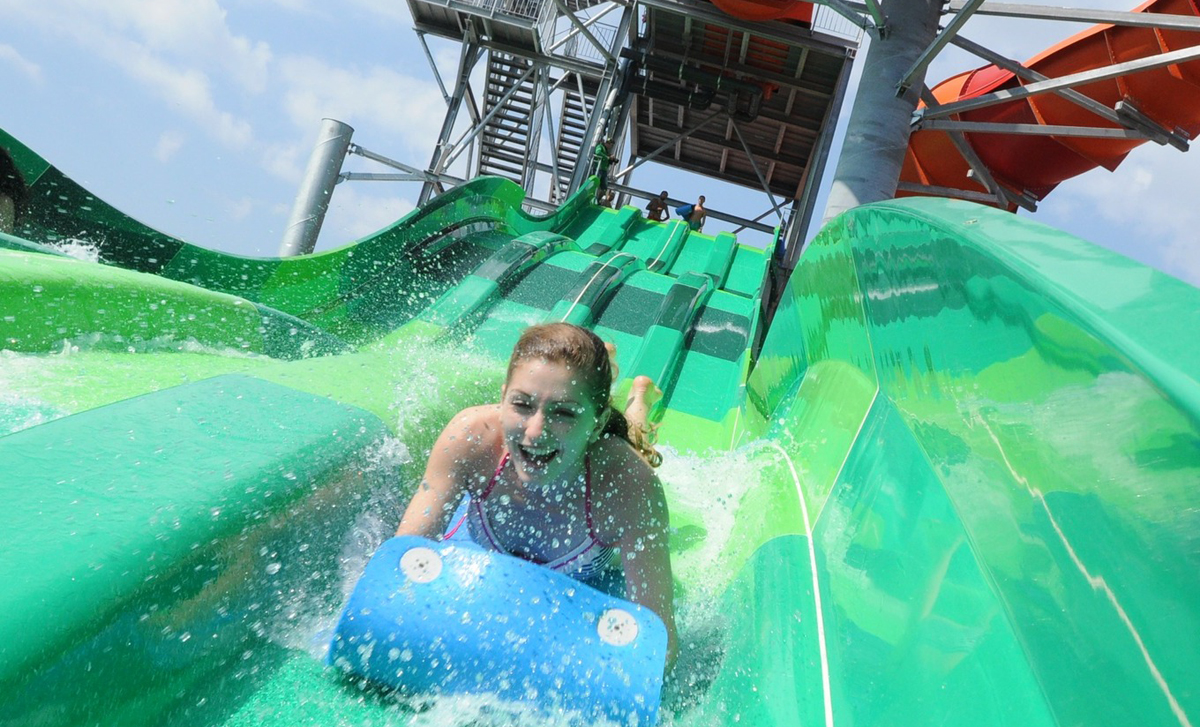 Общата дължина на пързалките в аквапарка надхвърля километър и половина. Сред найзапомнящите се съоръжения е Tornado – водна пързалка със завладяващо завихряне и спускане с надуваеми рингове. SpaceRacer и ProRacer предлагат усещане за скорост и надпревара, а FreeFall осигурява спиращо дъха вертикално спускане за любителите на екстремни преживявания. За онези, които предпочитат по-спокойно темпо, Мързеливата река предлага плавно пътуване сред зеленина и сянка, докато Дивата река съчетава естествени форми с водна динамика. Най-малките посетители се радват на специална детска зона с миниатюрни версии на основните съоръжения и тематични декори.