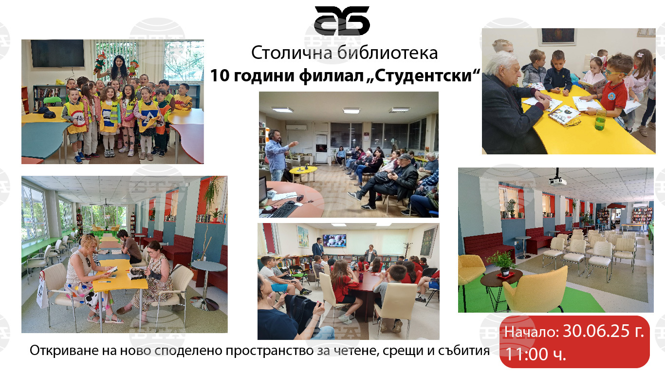 На 30 юни най-младежкият филиал на Столична библиотека - този в Студентски град, отбелязва 10-годишнината от създаването си с откриване на ново споделено пространство за четене, срещи и събития. Празникът ще бъде съпроводен с литературни четения и финала на Третия шампионат по поезия на софийските училища „Млада метафора“.
