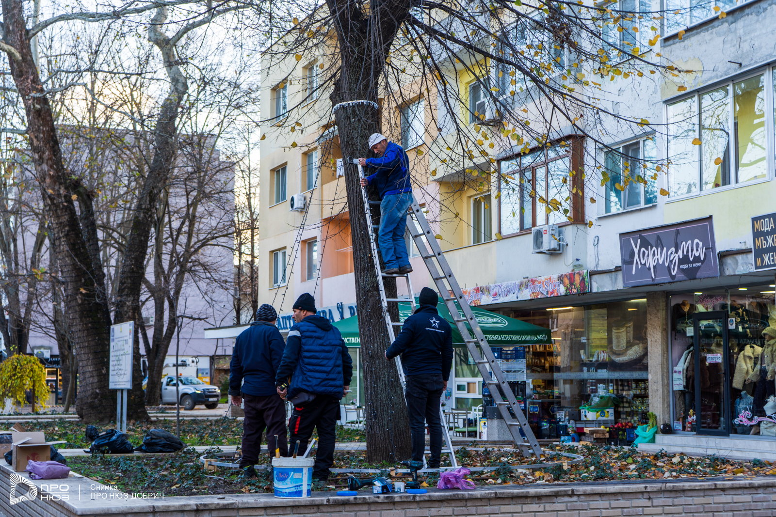 Поставят коледната украса в ремонтираната част на центъра на Добрич. Автовишка и служители на Община град Добрич монтират коледни лампички в централната част на града. По информация на Про Нюз Добрич се предвижда в района на бившето заведение „Блага Вайзе“ да бъде поставена и коледна елха. Тя ще бъде изградена върху конструкцията на съоръжението, което преди години се намираше на пл. „Демокрация“ до бившия партиен дом.