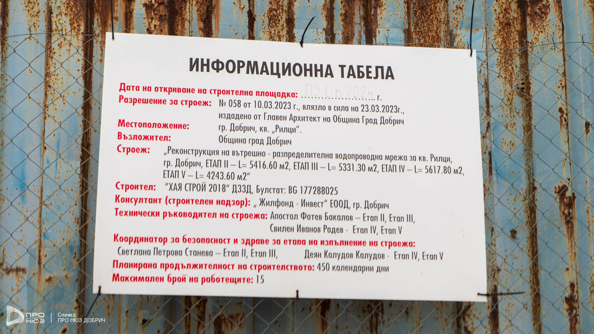 Протестът е във връзка с изпълняван строеж „Реконструкция на вътрешно-разпределителни водопроводни мрежи за кв. Рилци“, който се извършва на територията на квартала. За обекта е издадено Разрешение за строеж №058 от 10.03.2023 г., влязло в сила на 23.03.2023 г., от главния архитект на Община град Добрич.