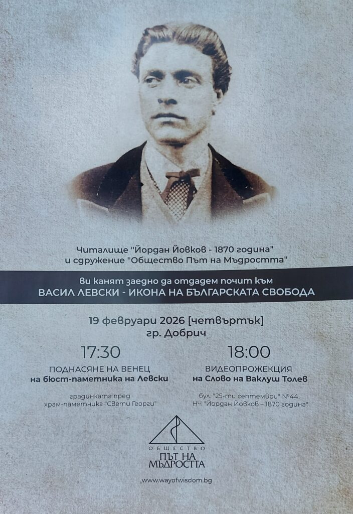 На 19 февруари 2026 г. от 18:00 часа в Мултифункционалната зала на третия етаж в сградата на читалището ще се състои прожекция на филма „Слово за Левски – един от 13-те Безсмъртни българи“. Инициативата е на школа „Път на Мъдростта“ към културната институция. Събитието е посветено на паметта на Васил Левски и е част от програмата по отбелязване на годишнината от гибелта на Апостола.