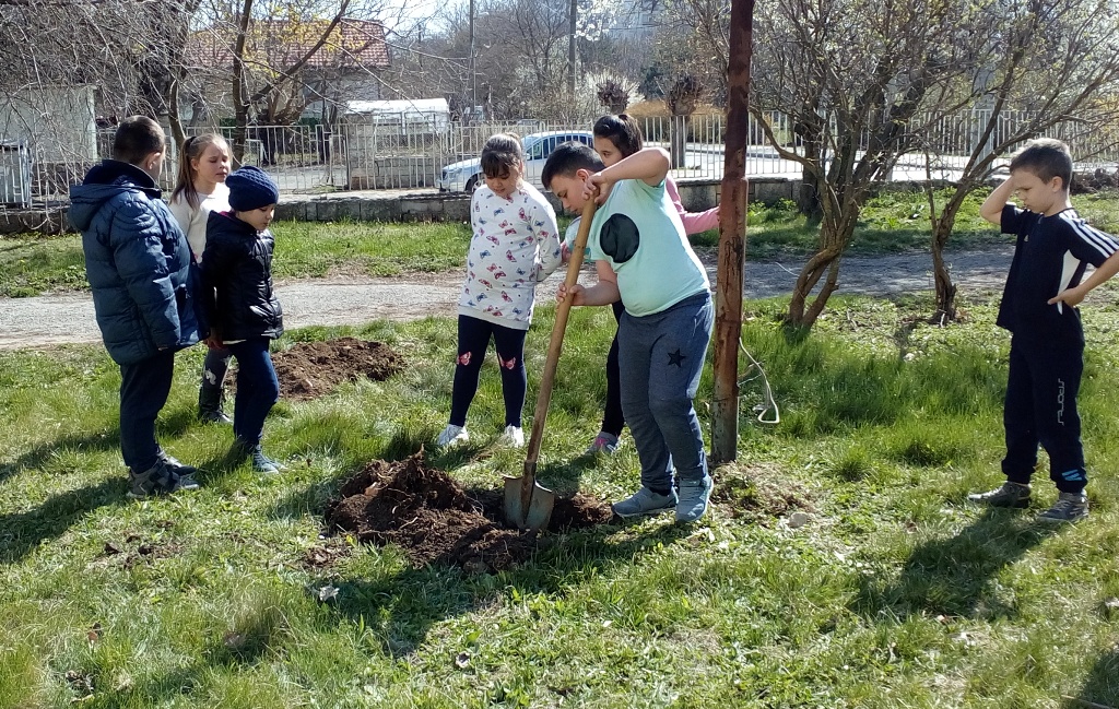 "По време на всеки урок за природата, говорим за опазването на планетата Земя и с какво ние можем да помогнем тя да бъде зелена и чиста. С толкова вълнение и нетърпение децата чакаха да дойде най-после пролетта, за да засадим своите две дръвчета и да си ги отглеждаме като наши рожби. След като вече го направихме, остава ангажимента да продължим да се грижим за тях."