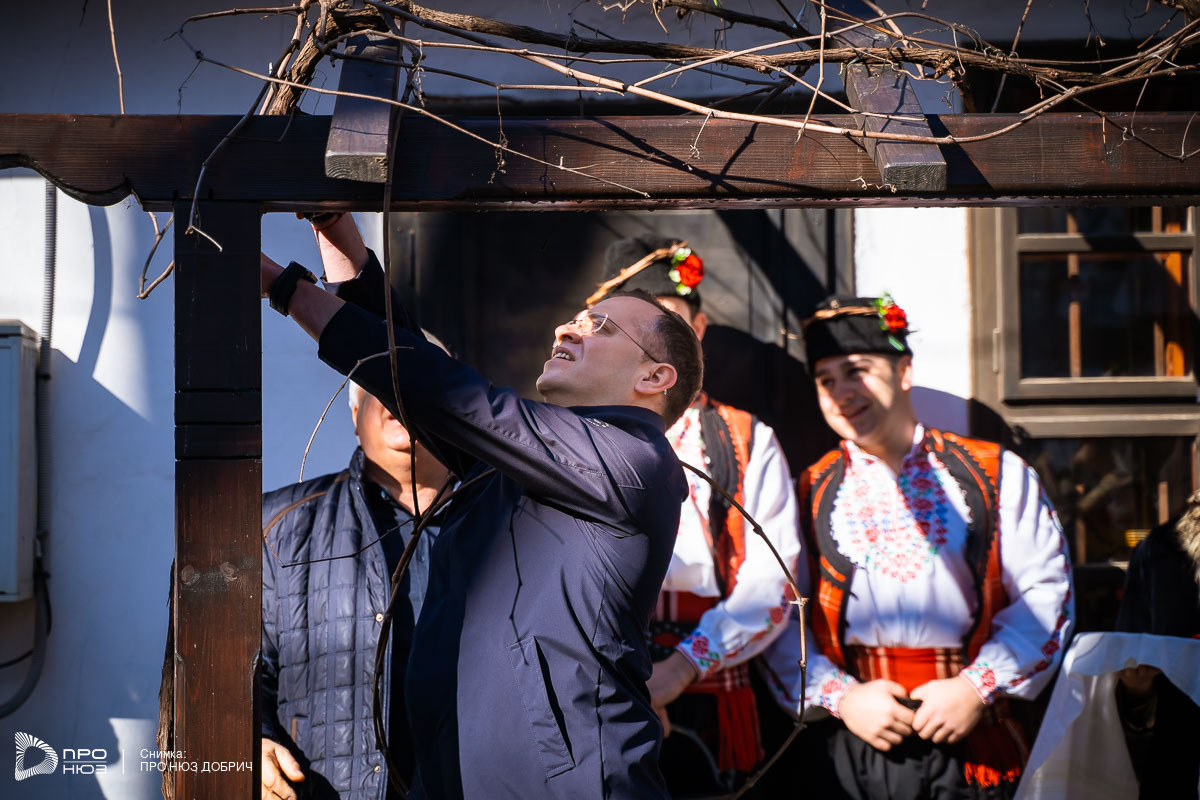 В ролята на "Цар на виното" отново влезе кметът на Добрич, Йордан Йорданов, който извърши символичното зарязване на лозата и отправи пожелания към присъстващите.