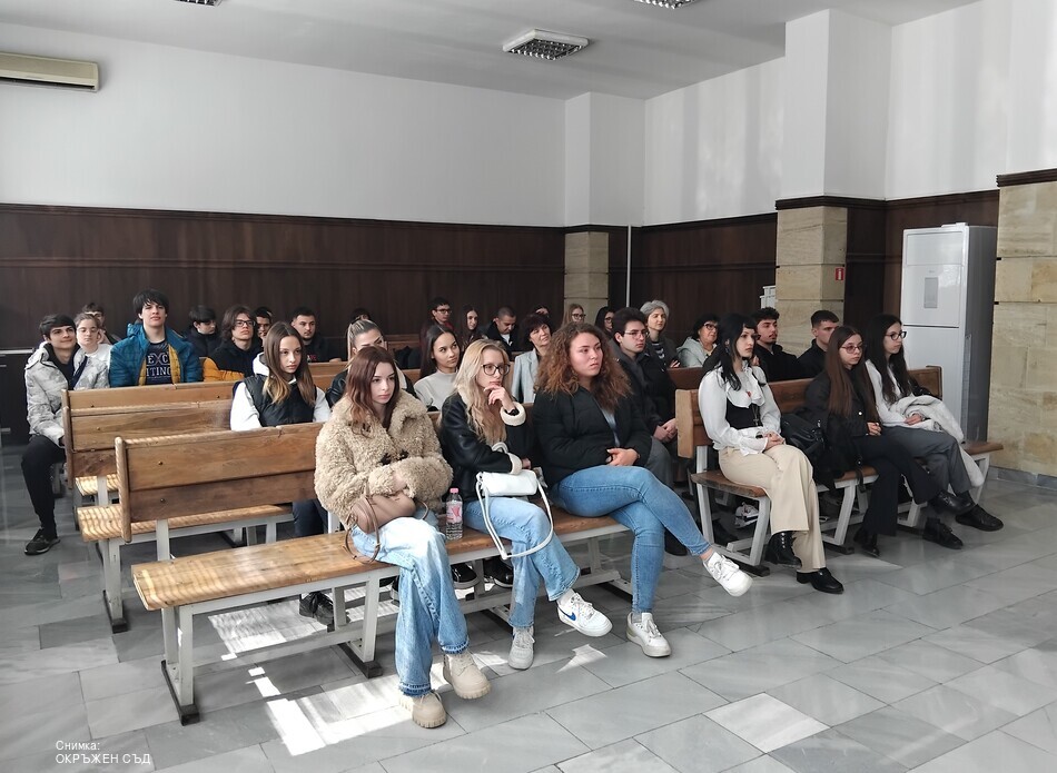 В съдебната палата гостуваха две групи ученици от СУ „Св. св. Кирил и Методий“ – Добрич, от 9 до 12 клас. Те бяха посрещнати от заместник-председателя на съда и ръководител на Наказателното отделение съдия Петър Монев.